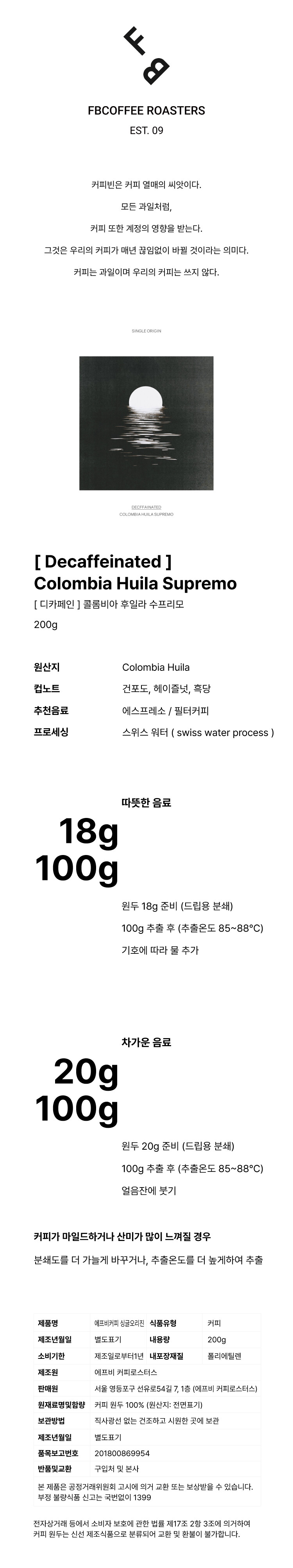 [ Decaffeinated ] Colombia Huila Supremo ( 200g )