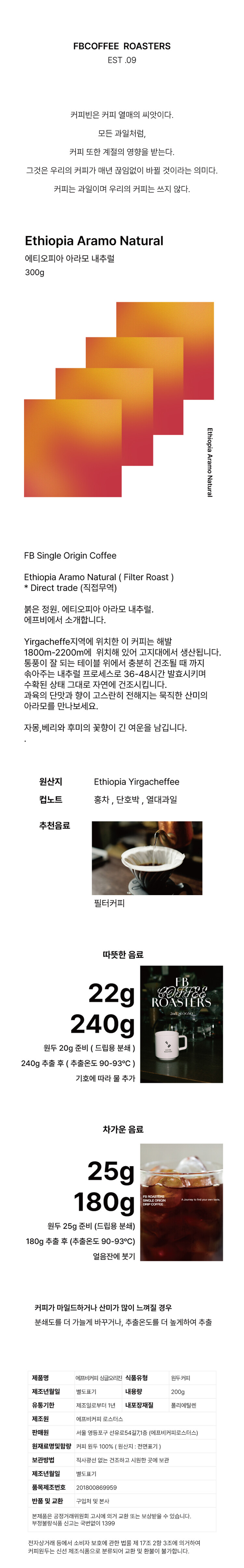 에티오피아 아라모 내추럴 Ethiopia Aramo Natural (200g)